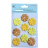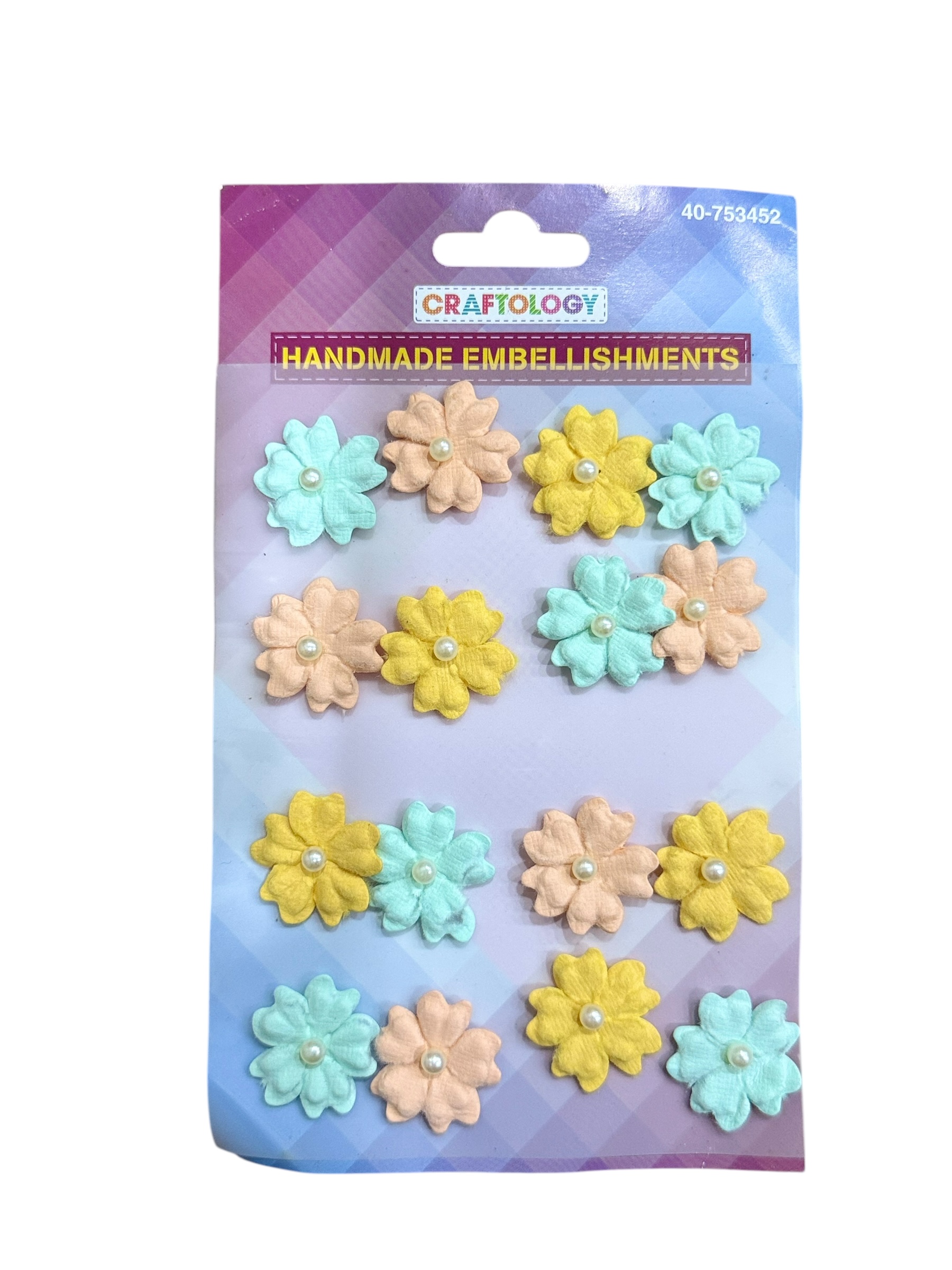 Soothing pastel embellishments in peach, yellow, and aqua tones. Soft textures with pearl centers make them a beautiful addition to journals, greeting cards, or nursery-themed DIYs.