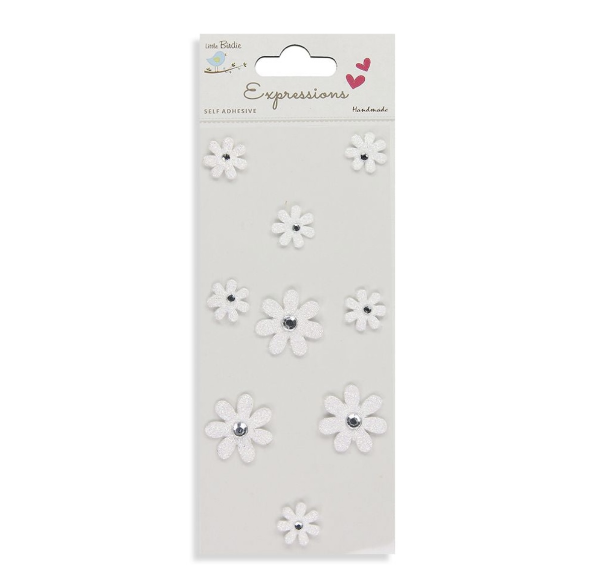 Glitter Daisy Stickers – Self Adhesive White Flowers