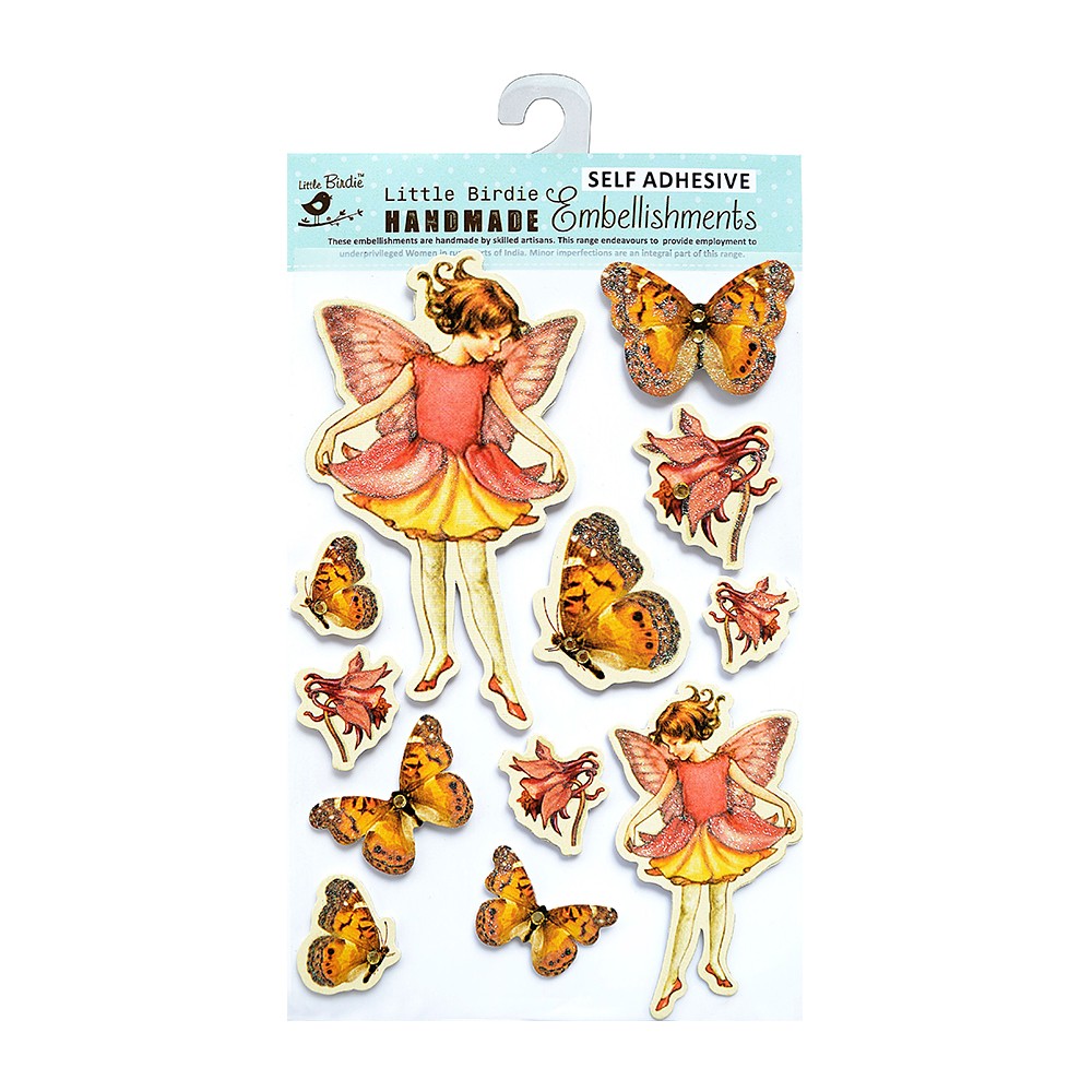 Bring magic to your crafts with this whimsical fairy and butterfly set. Featuring hand-painted details and sparkly finishes, these embellishments are ideal for fantasy themes, kids’ projects, and fairy tale scrapbooks.