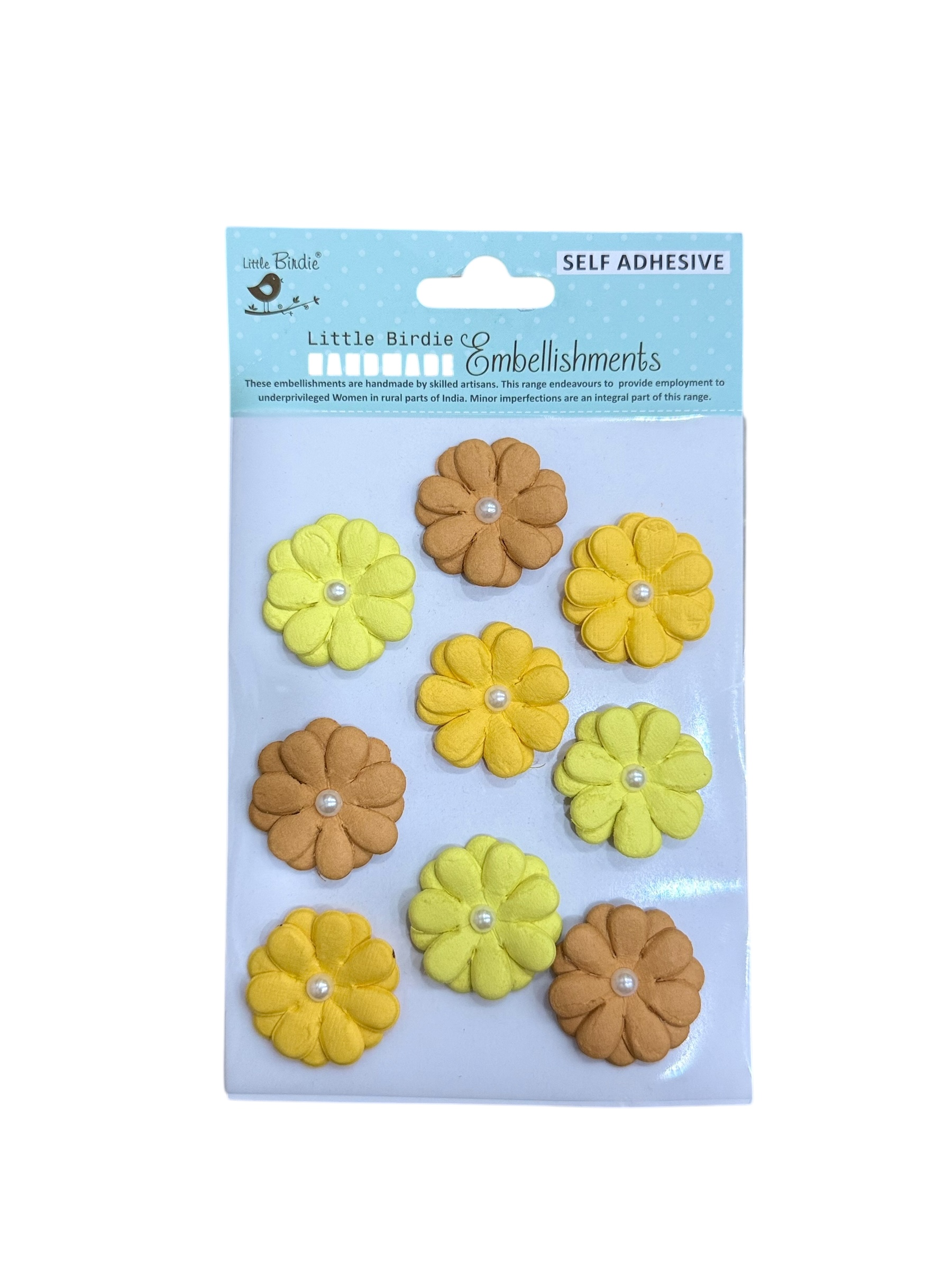 Little Birdie Yellow & Brown Floral Embellishments – Self Adhesive